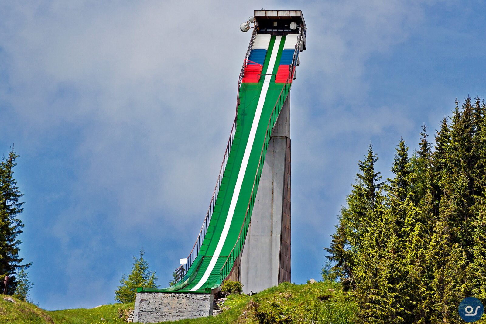 Wir suchten den Sessellift, was nicht besonders schwierig war. Vorbei ging es an zwei Schanzen. Auf der Größeren werden jährlich auch Weltcupspringen abgehalten.Die Karten für den Sessellift kosteten beide zusammen 24 Euro, wobei 4 Euro Pfand für die Chipkarten berechnet wurde. Es herrschte nicht viel Betrieb, so