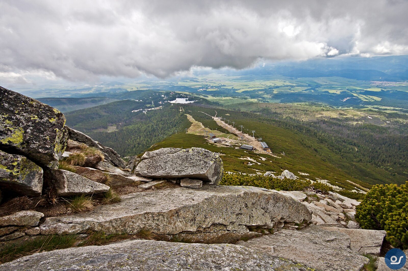ging es gleich nach oben. Ein wenig mulmig wurde uns schon, denn es war eine mächtige Höhe in der sich die Gondeln bewegten. Aber es ging alles gut. Eine himmlische Ruhe herrschte dort oben, nur die Vögel zwitscherten. Die Auffahrt dauerte gut 12 Minuten, in denen man komplett abschalten konnte. Oben angekommen, es waren immer noch ca. 9 Grad Celsius, machten wir uns wanderfertig. Von hier konnte man zum Predne Solisko (2093 m) wandern.Vom Schwierigkeitsgrad her war es machbar. Wir gingen den Weg an. Den Kamerarucksack auf dem Rücken und die 500er in der Hand so zogen wir los. Auf einem Dreiviertel der Strecke verließ Kathrin der Mut und ich musste alleine weiter gehen. Es war dann doch anstrengender als ich anfangs dachte. Ich habe es nicht ganz nach oben geschafft. Vielleicht auf 2050 Metern kehrte ich um. Die Kamera war mir mittlerweile auch im Wege, so verstaute ich sie dann im Rucksack. Ohne Kamera in der Hand, ließ es sich einfacher gehen. Oft hielt ich an , kramte die Kamera raus und schoss Fotos. Endlich. Darauf habe ich lange gewartet, ich war wieder in meinem Element. So vergaß ich auch ein wenig die Zeit da oben und auch, dass Kathrin einige Stationen unter mir wartete. Immerhin wehte ein kaltes Lüftchen. Aber sie war gut mit Sachen eingedeckt.