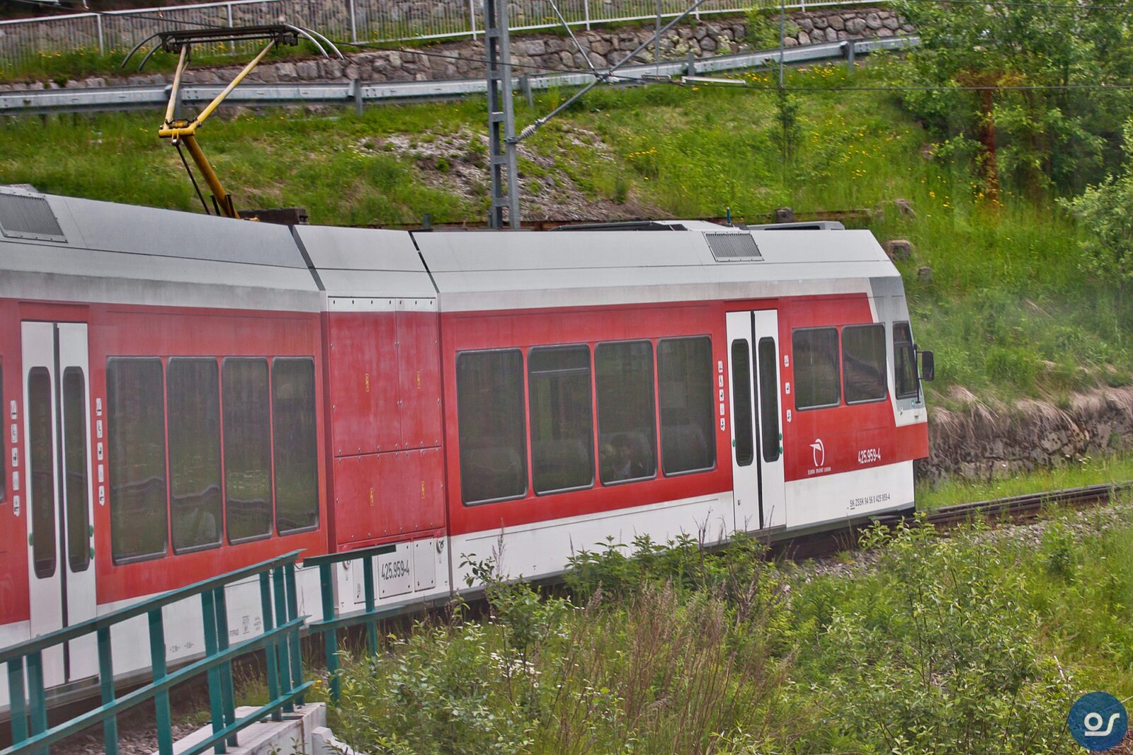 Auf jeden Fall war eine Menge Fußvolk unterwegs. In erster Linie waren Schulklassen anzutreffen. So bildeten sich an der Zahnradbahn auch längere Schlangen, was mich schon wieder ein wenig in Stimmung versetzte. Kathrin meinte aber, wir wären doch im Urlaub. Ich will ihr mal glauben. Das Ticket für die Zahnradbahn kostete für einen Erwachsenen 7 Euro in beide Richtungen. Die Fahrt nach oben dauerte 15 Minuten. Oben angekommen bot sich wieder ein berauschender Ausblick in die weite Landschaft, den man erst einmal wieder für einige Minuten genießen musste. Fotos hatte ich fast nur mit dem Weitwinkelobjektiv geschossen, der Perspektiven wegen. Aber es gab auch Motive, da war ein Wechsel des Objektives unbedingt von Nöten, manchmal sogar öfters als mir lieb war.
