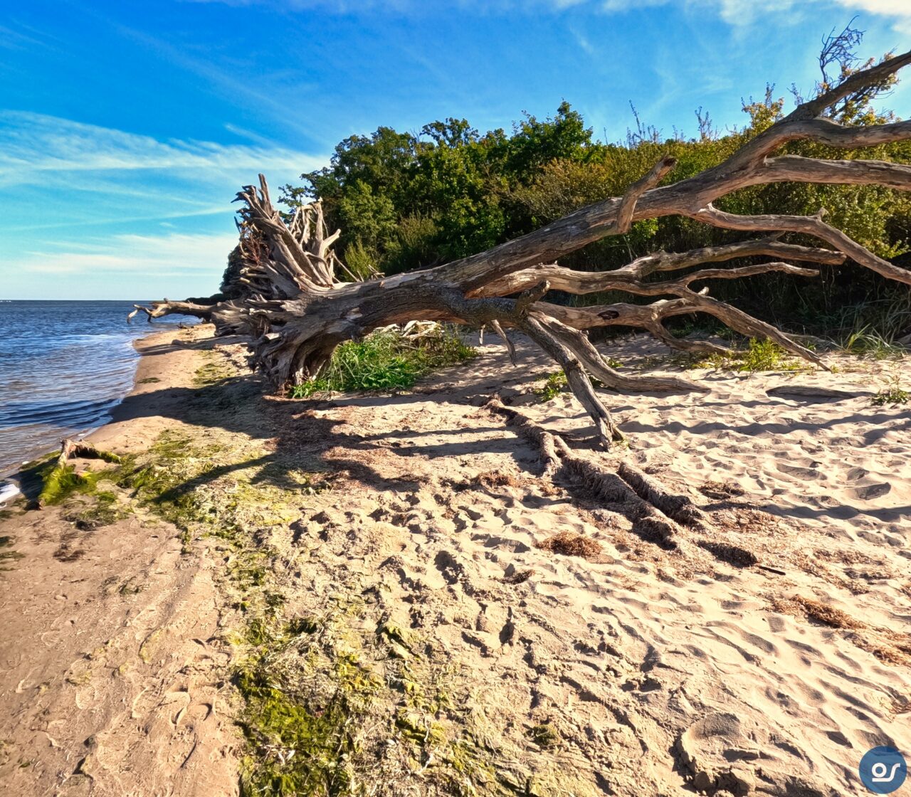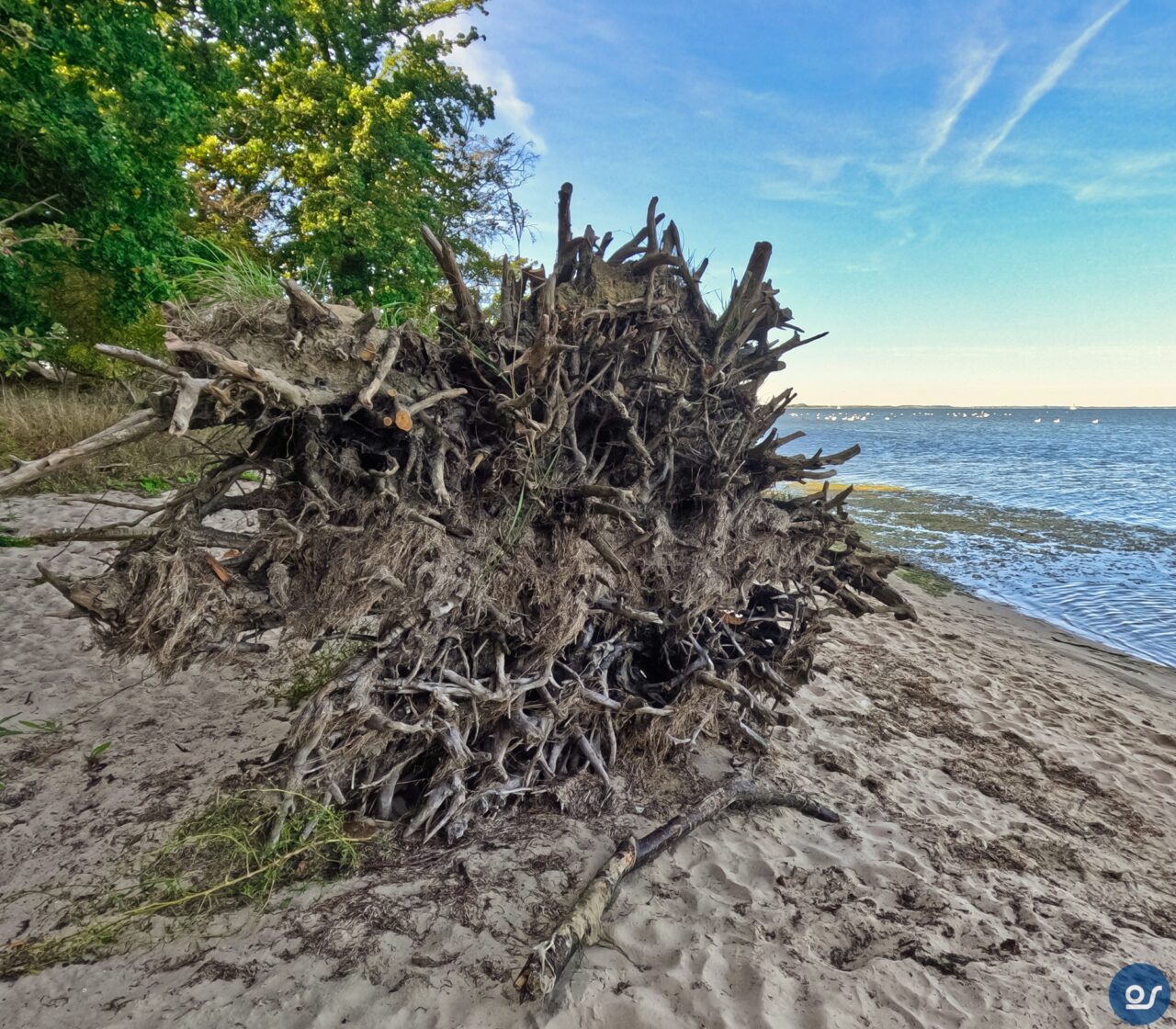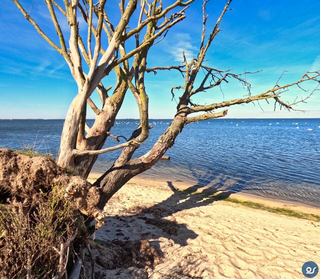 In Loissin findet man einen sehr guten Campingplatz, mit allem was das Herz begehrt. Hier auf diesem Platz hatten wir Hal gemacht. Nur wenige Meter vom Ufer des Greifswalder Boddens war man schon im Wasser. Es gibt hier viele Stellen an denen das Baden möglich ist, nicht so supertoll wie in der Ostsee , aber ausreichend. Von den schlafenden Bäumen hatte ich im Internet gelesen und da wollte ich natürlich hin. Das musste ich mir anschauen. Mit von der Partie war meine GoPro 13, wie schon so oft in der letzten Zeit. Auch hier habe ich das Bildverhältnis non 8:7 belassen.