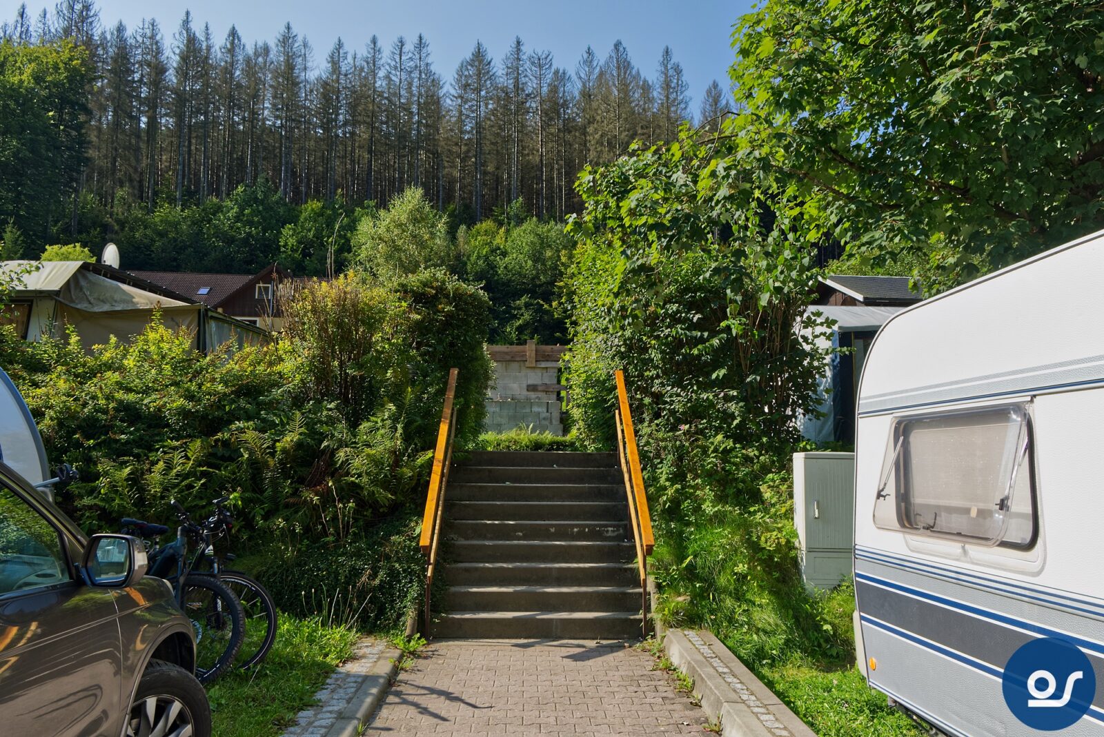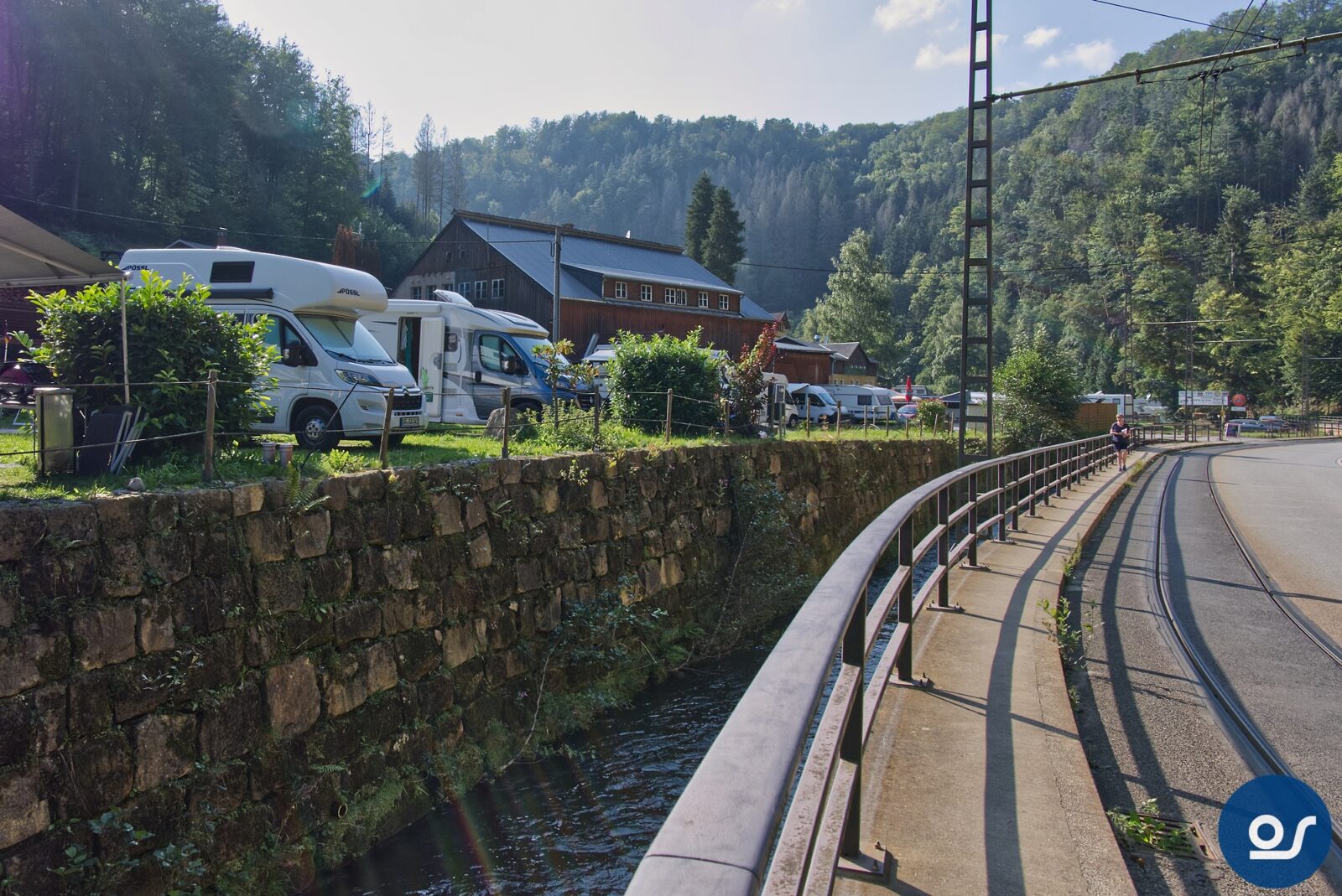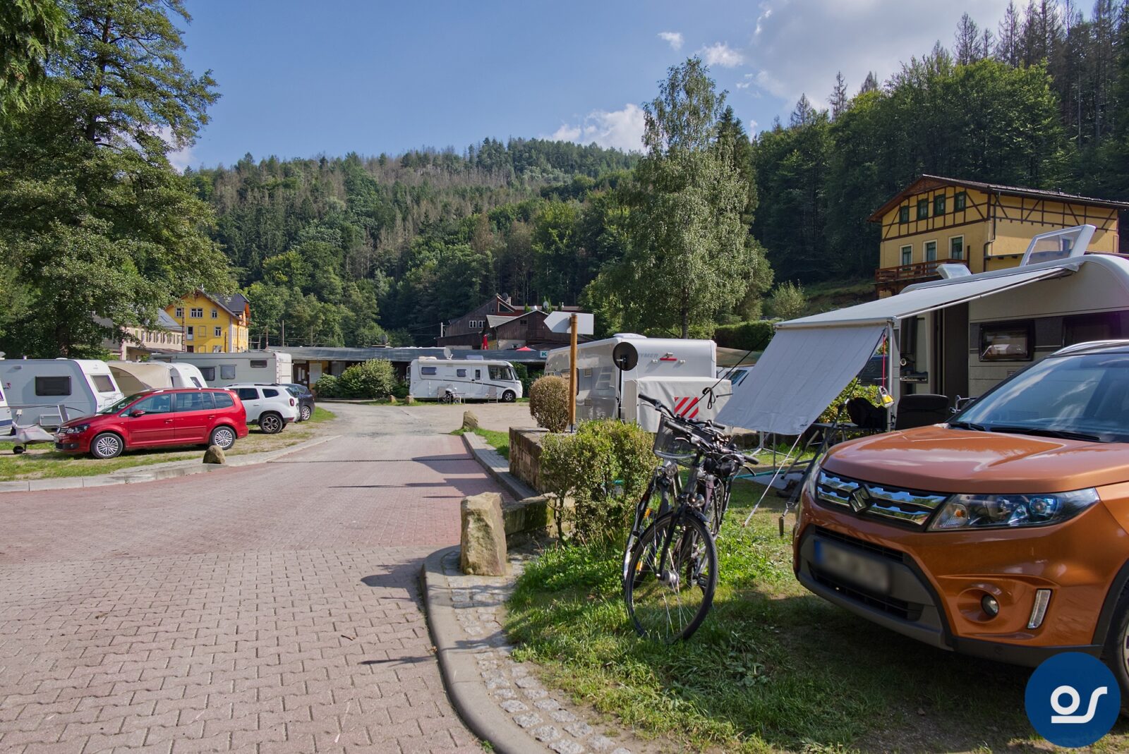 Der gesamte Platz und die Anlagen waren gepflegt und sauber. Obwohl man hier nur ein kleines Team von zwei Leuten zu Gesicht bekam. Das Personal war immer freundlich und aussagefähig. Der Platz war gerammelt voll. Die Leute kamen aus aller Herren Länder. Belgier und Schweizer, sowie Niederländer und Franzosen. Aus Deutschland waren die meisten, verständlich. Hier konnte man aber keinen Trend ersehen aus welcher Region die meisten kamen. Was allerdings ersichtlich war, die Anzahl von Womos und Wowas betrug ca. 3:2. Die Womos verschwanden am Morgen und kamen am Abend wieder. Es war ein totales Hin und Her. Zudem meldeten sich täglich zwischen 10-20 Camper ab. Abend kamen die Neuen. Es herrschte Verkehr wie auf der Autobahn. Wer Ruhe suchte war hier falsch am Platz. Wobei ich sagen muss, dass gegen 21 Uhr dann doch endlich eine Totenstille eintrat. Dann gab es noch eine Besonderheit. Die Kirnitzschtal-Bahn fuhr direkt am Platz vorbei. Die erste kam gegen 7 Uhr die letzte dann gegen 20 Uhr. Sie zog eine langgedehnte Kurve um den Campingplatz. Wer das quietschen von alten Straßenbahnen liebt, der wird den Sound der Bahn als Musik empfunden haben. Wir hatten uns nach zwei Tagen an den Geräuschpegel gewöhnt.