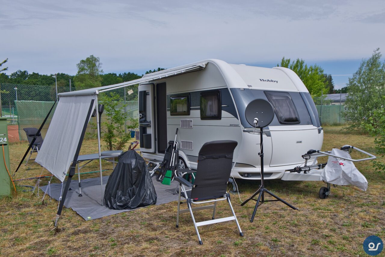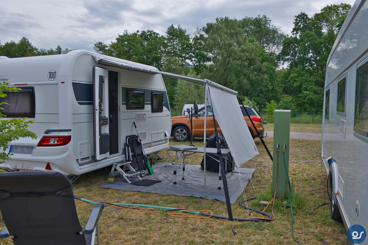 Männertag 2022, es war wieder Camping angesagt. Es sollte nicht weit sein und Wasser und Abwasser inklusive. Da kam dann nur wieder der Spreepark in Beeskow in Frage. Die Plätze waren um die 25 € und hatte alles was man sich wünscht. Sie waren ausreichend groß und es war alles inklusive, sogar der Strom. Auf dem Platz gab es ein kleines Waschhäuschen, mit Toilette und Dusche. Gleich nebenan konnte man das Chemieklo entsorgen. Das einzige klene Manko war, der harte Schotterrasen auf dem Platz. Hier muss man mit starken Heringen arbeiten, sonst schlägt man alle anderen krumm.