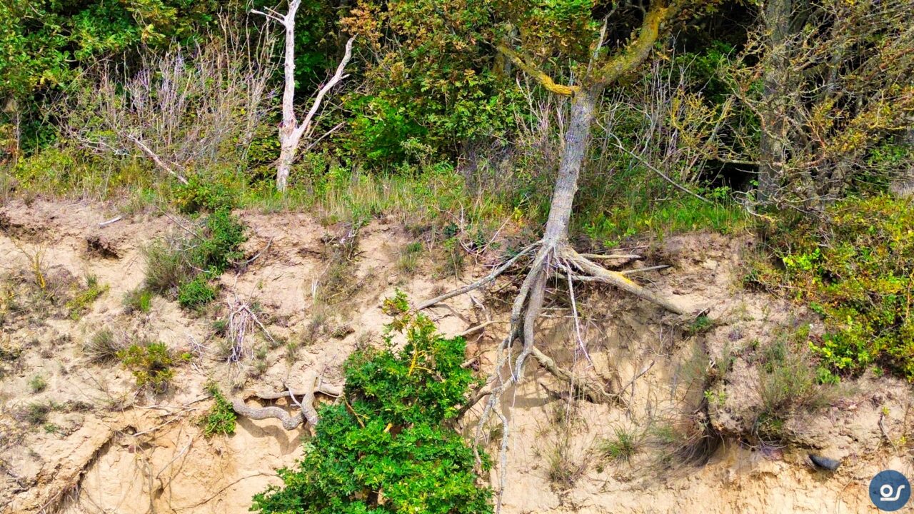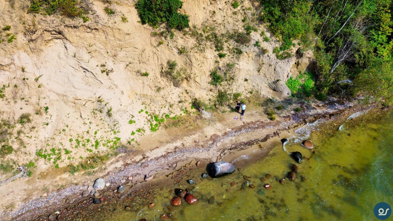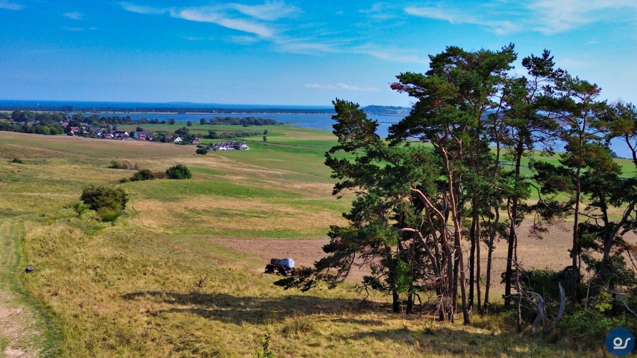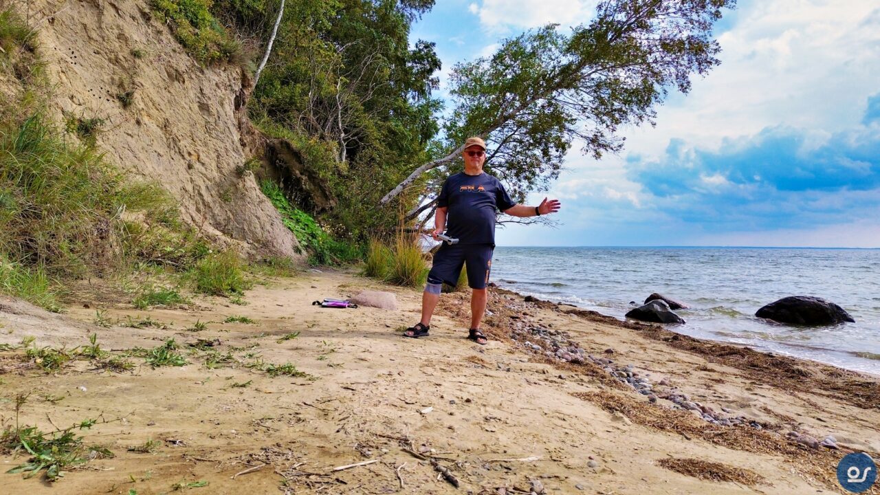 Fahrräder waren in diesem Urlaub nicht dabei, mein Ischias machte mir große Probleme. Also fuhren wir die 20 Minuten vom Zeltplatz zum Großen Zicker. Dort angekommen fanden wir auch gleich einen Parkplatz. Unser Ziel war die Steilküste und das Nonnenloch. Dort wollte ich ein paar Luftbilder einfangen, die ich in meinen Jahreskalender mit einbringen wollte. Mit dabei waren die Gopro13und meine Drohne DJI Mini 3 und natürlich das wichtigste, meine Frau.