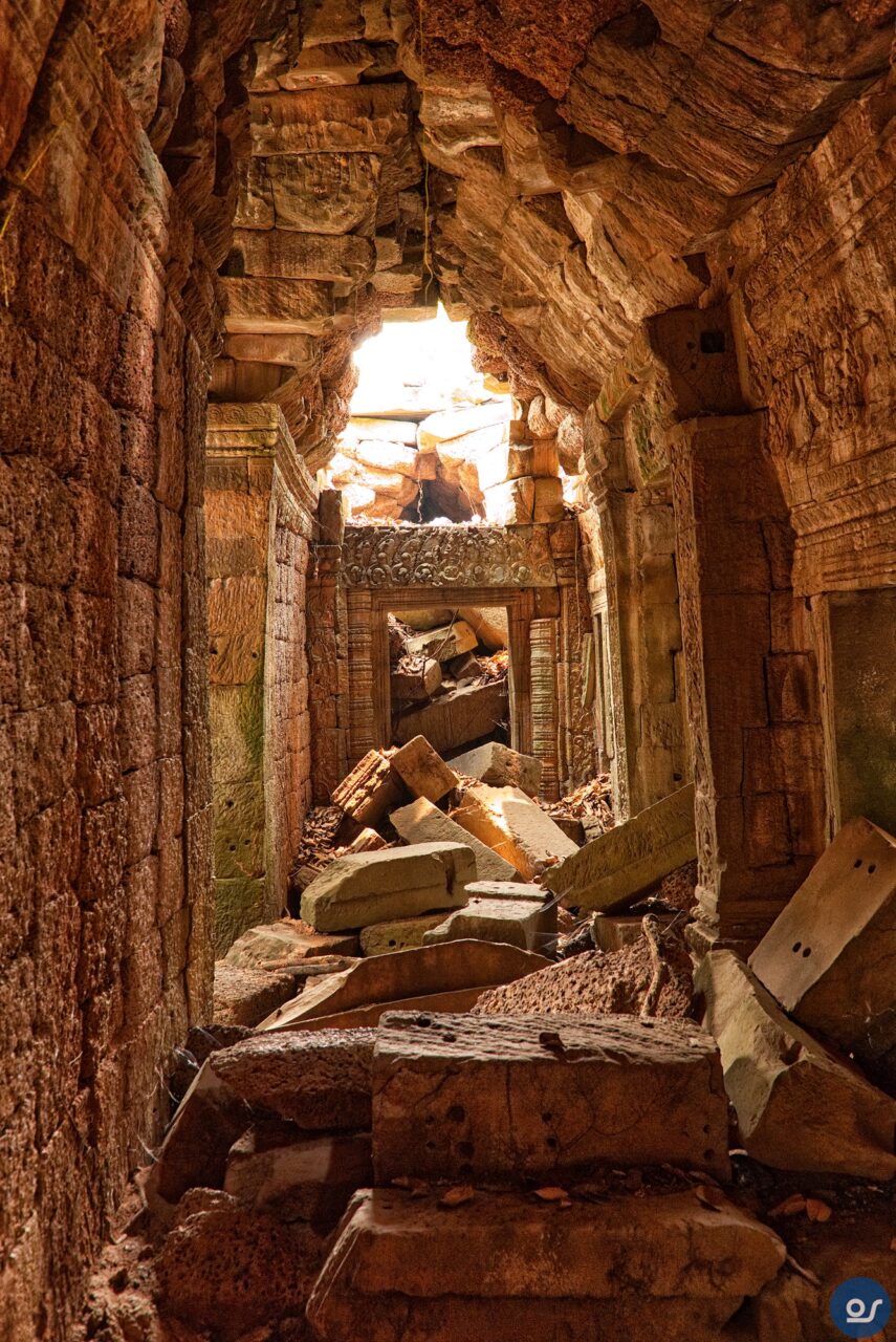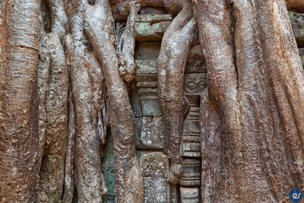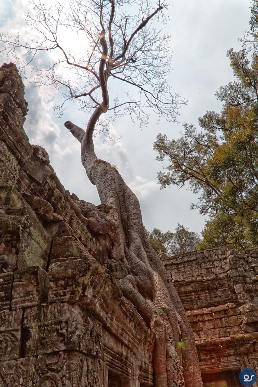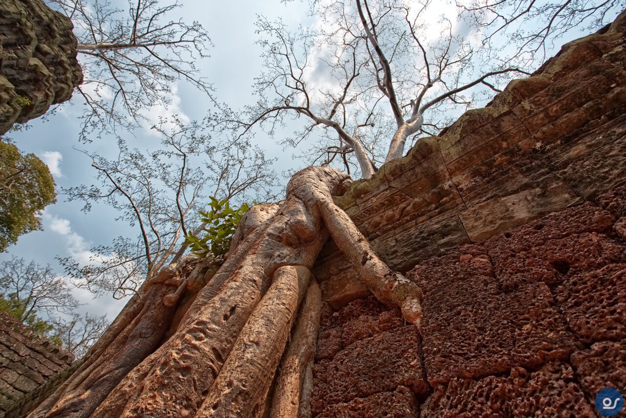 Die Anlagen in Ta Prohm sehen nicht mehr ganz so toll aus. Teilweise eingefallene Gebäude und Mauern. Einerseits sind die weit verbreiteten Würgefeigen Schuld, deren Wurzeln sich schadlos an der Bausubstanz laben. Nun erfolgt die Restaurierung eines Tempels im Eingangsbereich. Der Rest wurde von Bauschutt, Steinen und Bäumen befreit um den Besuchern einen gefahrlosen Rundgang zu ermöglichen.