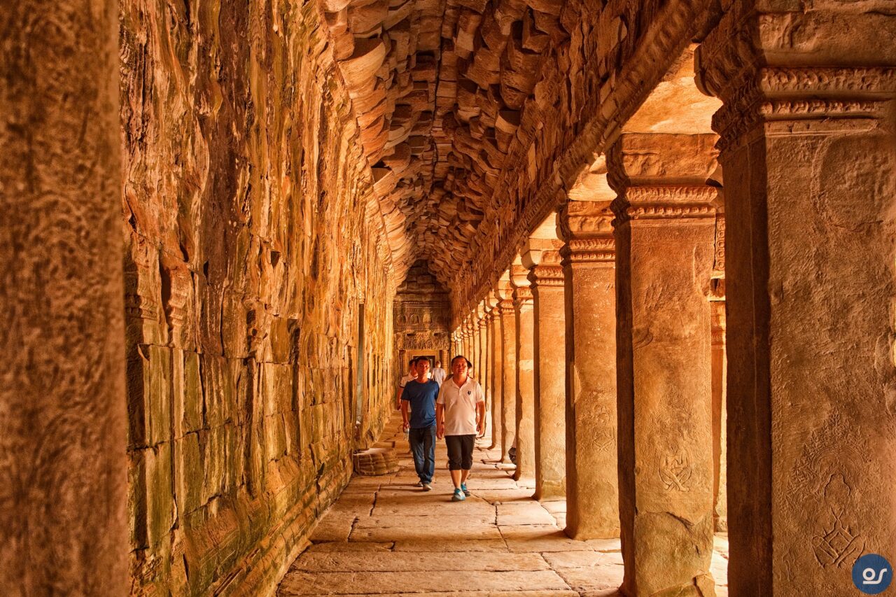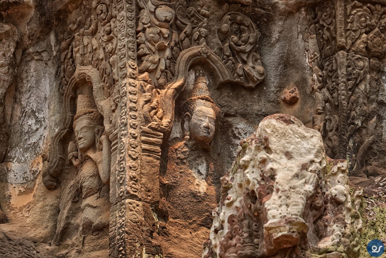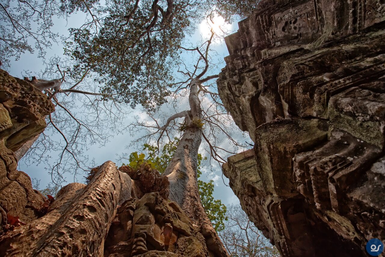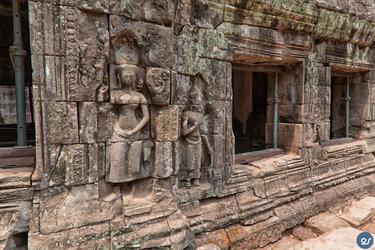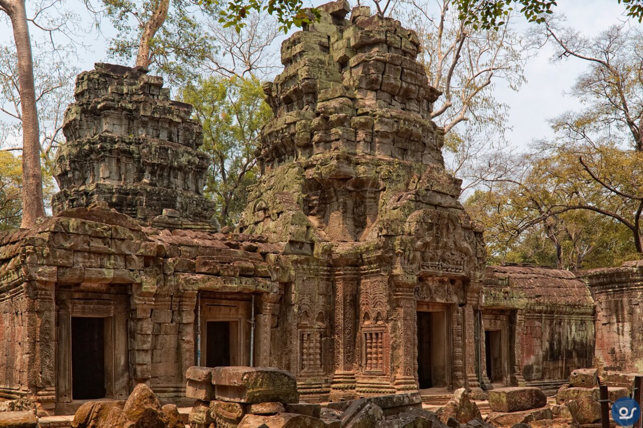 Die Anlagen in Ta Prohm sehen nicht mehr ganz so toll aus. Teilweise eingefallene Gebäude und Mauern. Einerseits sind die weit verbreiteten Würgefeigen Schuld, deren Wurzeln sich schadlos an der Bausubstanz laben. Nun erfolgt die Restaurierung eines Tempels im Eingangsbereich. Der Rest wurde von Bauschutt, Steinen und Bäumen befreit um den Besuchern einen gefahrlosen Rundgang zu ermöglichen.